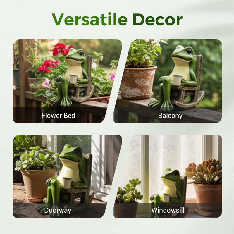 CHARMING ROCKING CHAIR DESIGN - The whimsical design of a frog relaxing in a rocking chair adds a touch of playful charm and rustic appeal to any space, creating a delightful and cozy focal point.